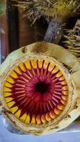 Sobre uma mesa de toalha florida, Dna Dulce demonstra a sua rica culinária preparada a base da planta vitória-régia, típica da Amazônia. Seus deliciosos quitutes vão desde tempurá, brownie, pipoca, rabanada, geléia, batata frita, uma diversidade de possibilidades extraídas da planta. Irresistível não experimentar tudo o que está disposto sobre a mesa.